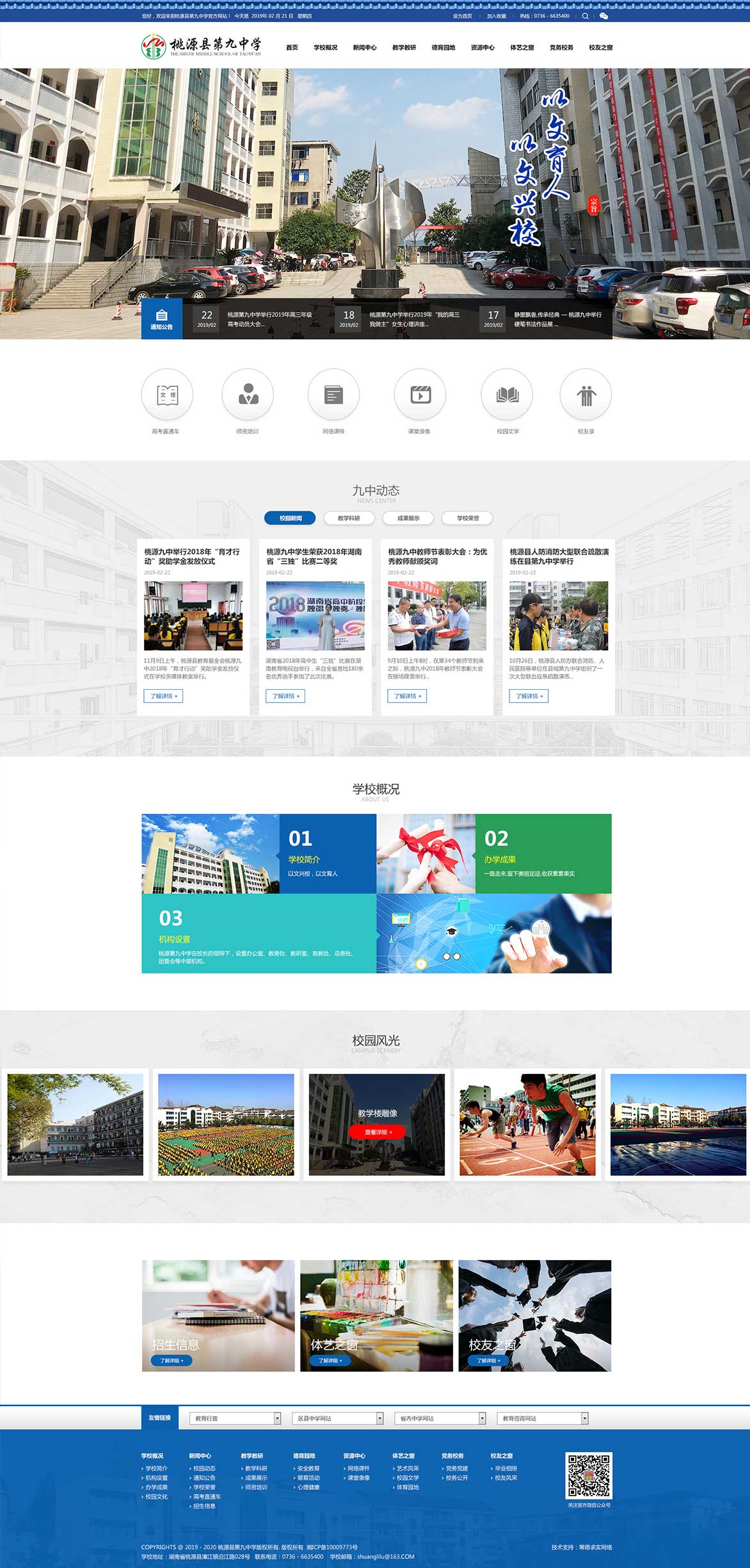 桃源縣第九中學(xué)坐落在桃源縣城漳江鎮(zhèn)沅水之濱,創(chuàng)建于1982年,前身為桃源縣城關(guān)中學(xué),1999年晉升為市級示范性中學(xué)?,F(xiàn)有教學(xué)班67個,學(xué)生3940人,教職工324人。 學(xué)校校園面積70余畝,教學(xué)樓、電教樓、學(xué)生公寓樓、學(xué)生食堂等教學(xué)生活設(shè)施齊全,儀器室、實驗室、圖書室均達國家二類標(biāo)準(zhǔn)。近年來,投入1000多萬新建了高標(biāo)準(zhǔn)運動場,重修了校門和高三教學(xué)樓,辦學(xué)條件全面改善,校園環(huán)境更加宜人。